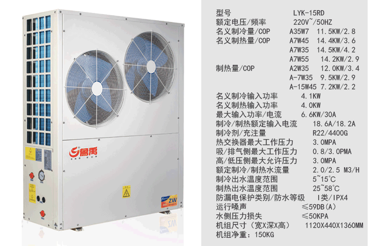 五、LYK-15RD超低溫空氣源熱泵機組參數: