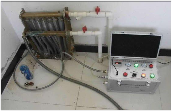 射彈式清洗是利用清洗彈與管壁間的摩擦力清除附著在管壁上的黏泥,不損傷地暖管道,清洗較徹底。這種清洗方法的不足之處在于,需拆卸地暖管。如果地下管路有接頭,施工非常不便且容易使清洗彈卡在管路內(nèi)。另外,還可能對原分集水器、閥門等相關(guān)的部位造成二次損壞。