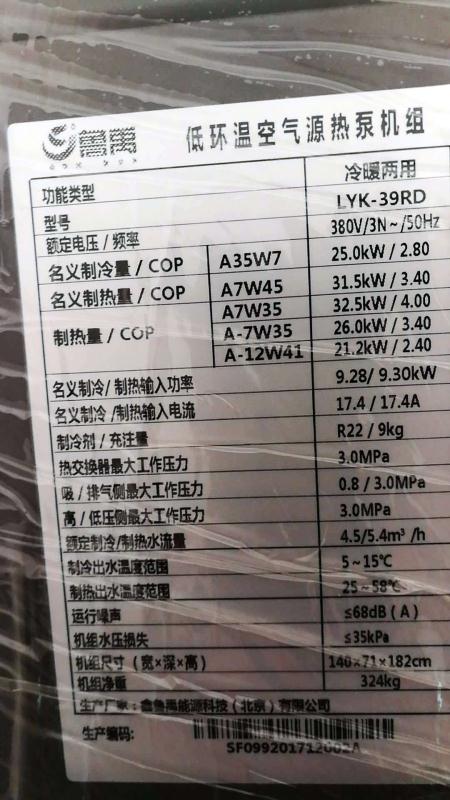 機(jī)組型號(hào):空氣源熱泵LYK-39RD(12.5P機(jī)組)