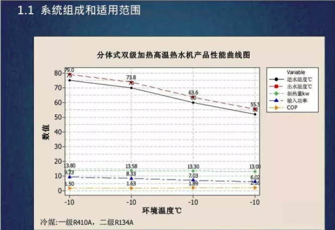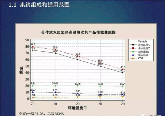 -空氣源熱泵冬季在室外較低溫度的供暖設(shè)計(jì)工況下,冷凝溫度和供水溫度有一定限制,因此,設(shè)計(jì)水溫不能過(guò)高。