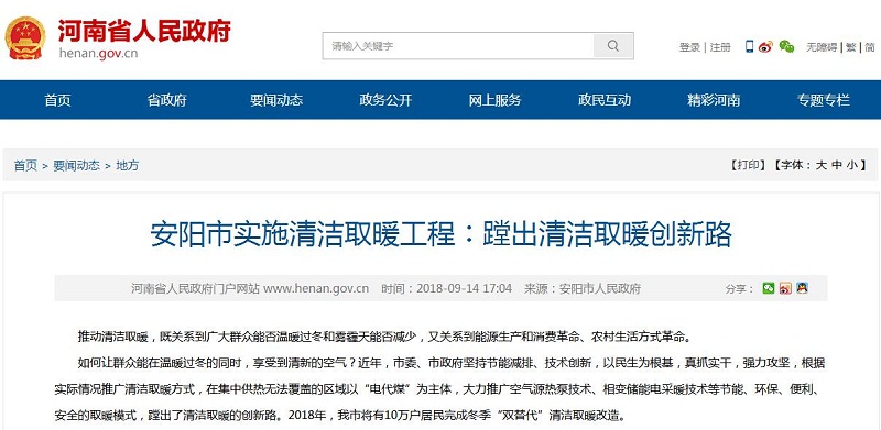 安陽市人民政府運用空氣源熱風機結(jié)合相變儲能蹚出清潔取暖創(chuàng)新路