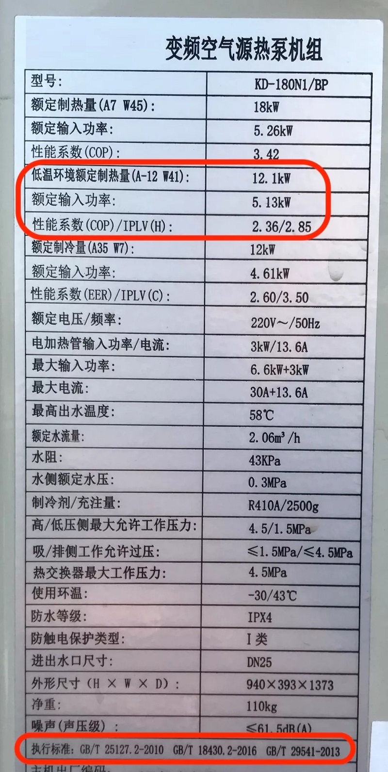 從其銘牌上我們可以看出,該機型執(zhí)行的標準是GB/T 18430.2。該標準適合于風冷熱泵,其制熱名義工況是7℃。而根據(jù)北京農(nóng)委的要求,低溫空氣源熱泵的送檢要求為:
