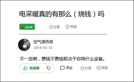 這是某論壇里一個(gè)關(guān)注度非常高的話題。在討論區(qū),有人這么回答:“不一定啊,費(fèi)錢不費(fèi)錢取決于你用什么設(shè)備。用費(fèi)電的設(shè)備當(dāng)然費(fèi)錢,比燒煤還貴。用節(jié)能省電的設(shè)備當(dāng)然不費(fèi)錢。一方面在于熱轉(zhuǎn)化率,另一方面在于保溫。所以選擇比較好的設(shè)備和做好房屋保溫是很重要的”。