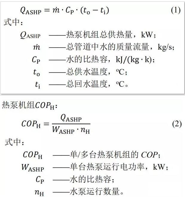 1)單/多臺熱泵機組性能評價指標熱泵機組總供熱量QASHP: