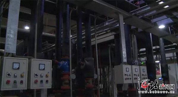 24日上午9時30分左右,在河北某大學(xué)的校園內(nèi)操場附近,一處鐵絲網(wǎng)圍起來的區(qū)域內(nèi),沿著通往地下室的樓梯進入污水源熱泵機房,一排排大型的灰色的管道和控制箱赫然入目。