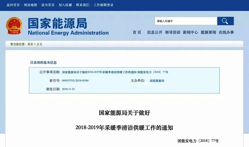 國家能源局關(guān)于做好2018-2019年采暖季清潔供暖工作的通知
