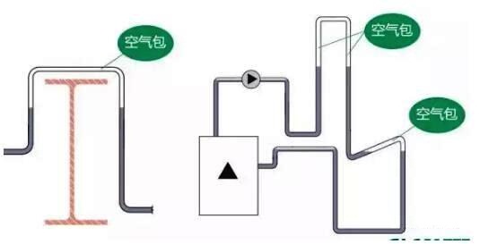 整個(gè)系統(tǒng)的主管道一定要平直,順?biāo)鞣较蚵杂猩掀伦詈,也就是說(shuō)進(jìn)水管稍稍往上抬,回水管稍稍往下降,這樣可以方便管道中空氣的排放,而且主管道切不可走U型,會(huì)形成氣堵,及時(shí)用軟連接也不行。
