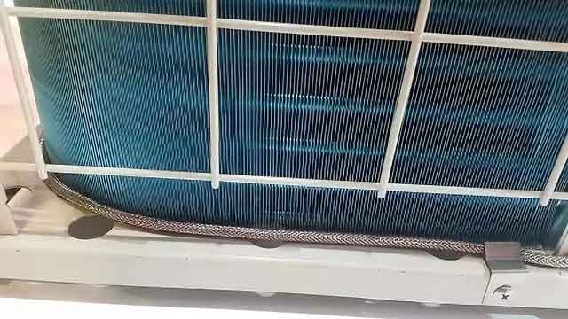 圖2是蒸發(fā)器,蒸發(fā)器的翅片之間都有間距,如果蒸發(fā)器翅片間距大的話,那么結(jié)霜的面積就小;而間距越小,翅片就越密,那么結(jié)霜的面積就越大。空調(diào)為了做到高效和體積小,間距一般為0.8毫米,最大也就是1.1毫米。