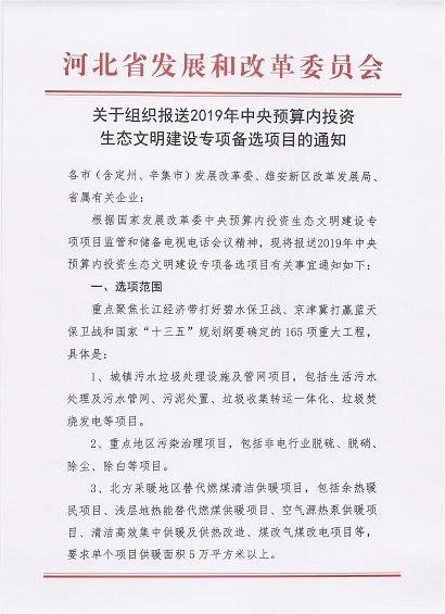 根據《中央預算內投資生態(tài)文明建設專項管理暫行辦法》(發(fā)改環(huán)資規(guī)〔2017〕2135號)和7月27日國家發(fā)展改革委中央預算內投資項目申報及監(jiān)管電視電話會議精神,近期山東、河北、河南、吉林等地陸續(xù)發(fā)布關于組織申報相關項目的通知。