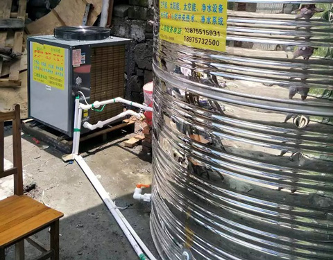 劉總到磚廠進行現(xiàn)場考察后,根據(jù)客戶的需求提供了設(shè)計方案,在原來的燃煤鍋爐的系統(tǒng)上進行改造,配置一臺5P商用空氣源熱泵熱水器,外加一個4噸的水箱。項目安裝結(jié)束后,正式進入運行階段,效果良好,很好地滿足了磚廠的熱水需求。