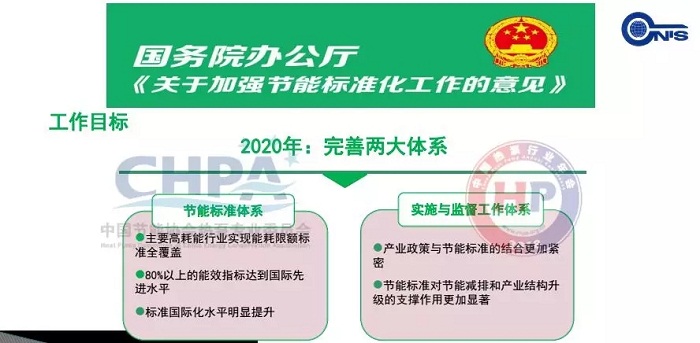 首先,向大家簡(jiǎn)要介紹一下我國(guó)標(biāo)準(zhǔn)標(biāo)識(shí)的概況。我國(guó)高度重視節(jié)能標(biāo)準(zhǔn)化工作,除《節(jié)能法》之外,很多政策文件都提到要加快制定能效和能耗限額標(biāo)準(zhǔn)。在2015年國(guó)務(wù)院辦公廳頒布的《關(guān)于加強(qiáng)節(jié)能標(biāo)準(zhǔn)化工作的意見(jiàn)》中提到,到2020年國(guó)家要完善兩大標(biāo)準(zhǔn)體系建設(shè):一是“節(jié)能標(biāo)準(zhǔn)體系”,提出主要高能耗行業(yè)實(shí)現(xiàn)能效限額標(biāo)準(zhǔn)全覆蓋,80%以上的能效指標(biāo)都要達(dá)到國(guó)際先進(jìn)水平,標(biāo)準(zhǔn)國(guó)際化水平要明顯提升;二是“實(shí)施與監(jiān)督工作體系”,要求產(chǎn)業(yè)政策與節(jié)能標(biāo)準(zhǔn)結(jié)合更加緊密,節(jié)能標(biāo)準(zhǔn)對(duì)節(jié)能減排和產(chǎn)業(yè)結(jié)構(gòu)升級(jí)起到顯著的支撐作用。