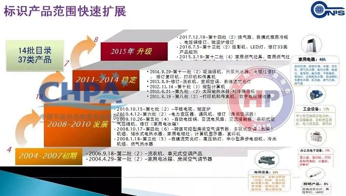 目前國(guó)家的節(jié)能標(biāo)準(zhǔn)有300余項(xiàng)(不含工程建設(shè)標(biāo)準(zhǔn)),其中強(qiáng)制性標(biāo)準(zhǔn)約占60%,其余為推薦性標(biāo)準(zhǔn)。重點(diǎn)包括:強(qiáng)制性能耗限額標(biāo)準(zhǔn)106項(xiàng)強(qiáng)制性能效標(biāo)準(zhǔn)65項(xiàng)。依據(jù)能效標(biāo)準(zhǔn),我國(guó)于2004年正式實(shí)施了強(qiáng)制性能效標(biāo)識(shí)管理制度,到目前為止已經(jīng)發(fā)布14批目錄,有37類(lèi)產(chǎn)品納入到了能效標(biāo)識(shí)的目錄范圍。