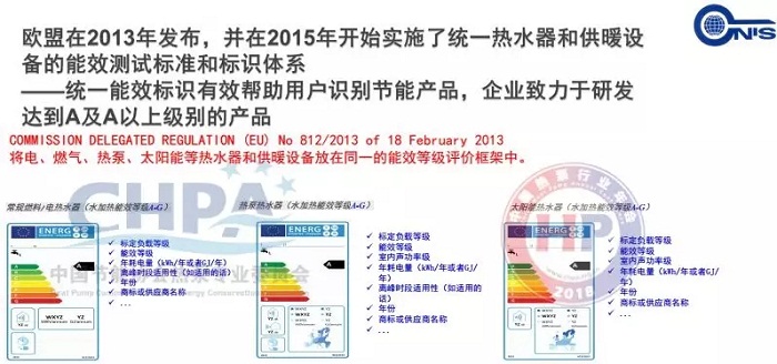 歐盟在2013年發(fā)布,2015年開(kāi)始實(shí)施了統(tǒng)一熱水器和供暖設(shè)備的能效標(biāo)準(zhǔn)和標(biāo)識(shí)體系,將電、燃?xì)狻岜谩⑻?yáng)能等熱水器和供暖設(shè)備放在了同一能效等級(jí)評(píng)價(jià)框架中,能夠有效幫助用戶識(shí)別節(jié)能產(chǎn)品,促進(jìn)企業(yè)致力于研發(fā)達(dá)到A級(jí)和A以上級(jí)別產(chǎn)品。