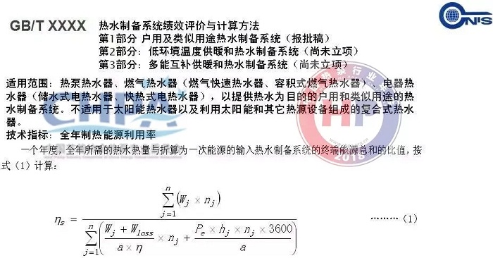 經(jīng)過(guò)了多次征求意見(jiàn),目前團(tuán)體標(biāo)準(zhǔn)已經(jīng)形成了送審稿,標(biāo)準(zhǔn)的名稱是T/CECA XXXX-XXXX《家用和類(lèi)似用途熱水器能效測(cè)試計(jì)算方法》,適用范圍包括熱泵熱水器、燃?xì)鉄崴?燃?xì)饪焖贌崴、容積式燃?xì)鉄崴?、電器熱水器(儲(chǔ)水式電熱水器、快熱式電熱水器),以提供熱水為目的的戶用和類(lèi)似用途的熱水制備系統(tǒng)。由于太陽(yáng)能熱水器測(cè)試方法的復(fù)雜性,暫時(shí)不適用于太陽(yáng)能熱水器以及利用太陽(yáng)能和其它熱源設(shè)備組成的復(fù)合式熱水器。