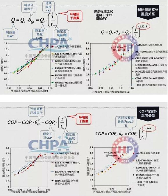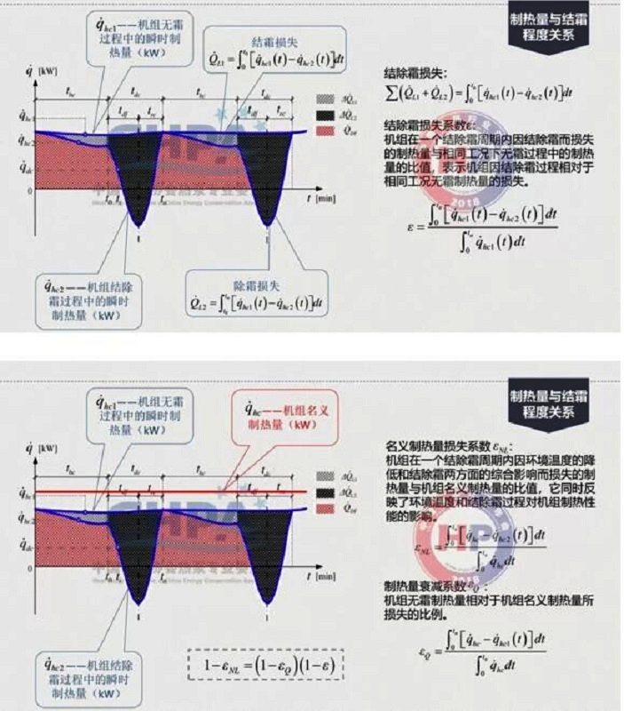在這個(gè)因子的確定上,我們對(duì)國(guó)內(nèi)有影響的廠家生產(chǎn)的熱泵機(jī)組進(jìn)行了數(shù)學(xué)上面的處理;其環(huán)境因子的值在一般情況下,指數(shù)是5.65,建立了這個(gè)數(shù)學(xué)模型。同時(shí),對(duì)于除霜的問(wèn)題,結(jié)霜是逐步的增厚,厚到一定的程度影響其換熱。為此,我們要求一定要通過(guò)除霜進(jìn)行試驗(yàn)。此時(shí),除霜是消耗其它的能量。