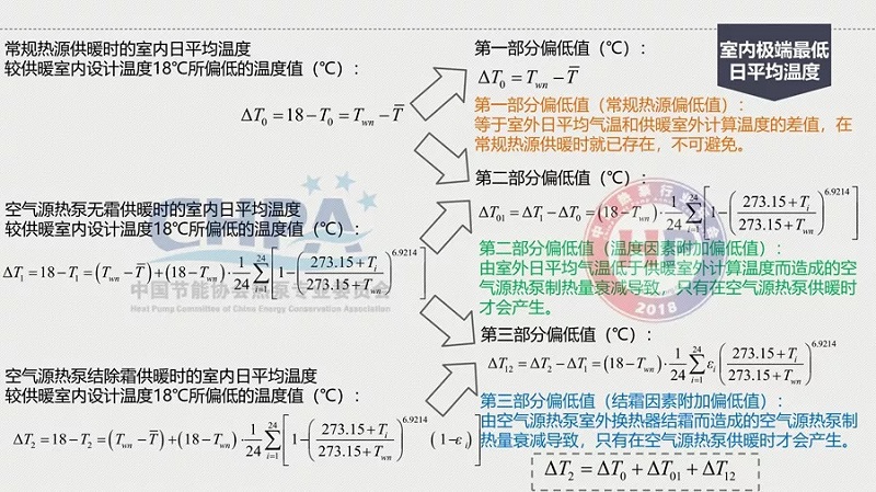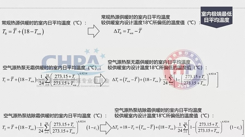 那么,怎么由18℃降到13℃?原因是在統(tǒng)計(jì)規(guī)定室外計(jì)算溫度的時(shí)候,已經(jīng)有了不保證5天的室內(nèi)空氣質(zhì)量。在這樣的情況下,它的偏差就比較大了。其中,室內(nèi)日平均溫度不保證18℃的條件是熱泵無(wú)霜制熱量在經(jīng)過(guò)結(jié)除霜修正后的實(shí)際制熱量衰減至低于維持室內(nèi)溫度18℃的建筑需熱量。
