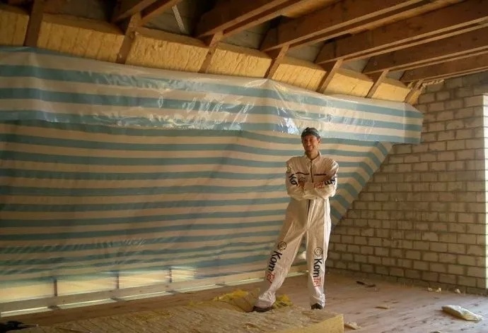 圖為地暖地面構(gòu)造中,最底層的防水隔潮膜的鋪設(shè)施工現(xiàn)場(chǎng)