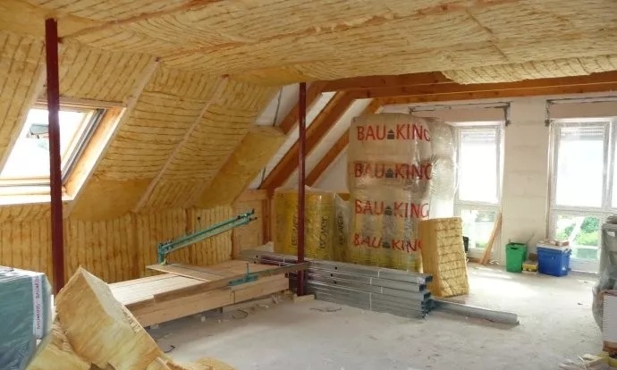 設(shè)備間的內(nèi)部,天花板的底部,石膏板的釘貼,施工現(xiàn)場(chǎng)