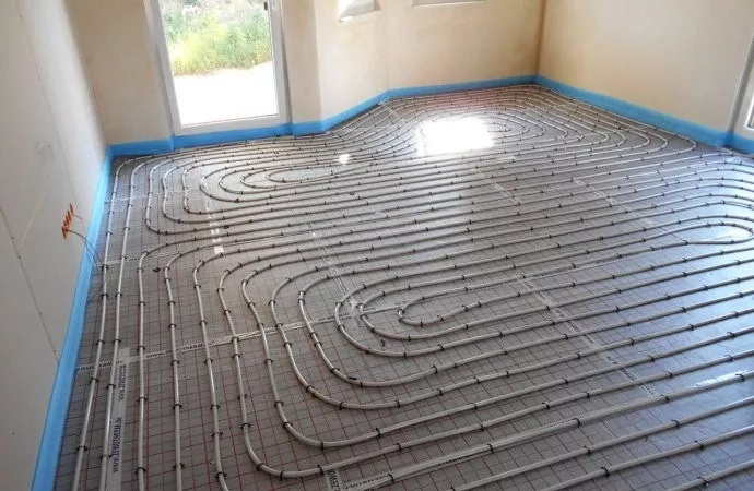 地暖地面構(gòu)造中的砂漿面層,已經(jīng)澆注完成