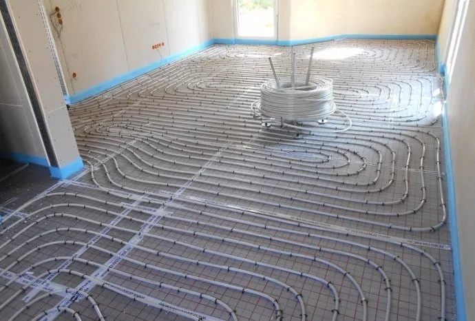 白色的地暖管線,布設(shè)施工現(xiàn)場(chǎng)一瞥01