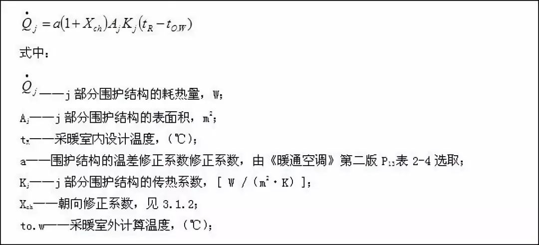 圍護(hù)結(jié)構(gòu)的耗熱量應(yīng)按下式計(jì)算: