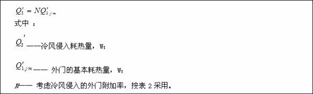 門(mén)窗縫隙滲入冷空氣的耗熱量應(yīng)按下式計(jì)算: