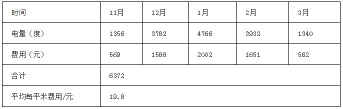 通過(guò)一個(gè)冬天檢測(cè),室內(nèi)采暖溫度設(shè)置恒溫20℃左右采暖,運(yùn)行數(shù)據(jù)如表4。據(jù)客戶(hù)反饋,一個(gè)采暖季下來(lái)才六千多元,平均一個(gè)月僅1200多元,節(jié)能明顯?蛻(hù)表示:“空氣源熱泵采暖效果很好,相比燒煤舒服多了,省去了很多麻煩,運(yùn)行費(fèi)用也不高。”