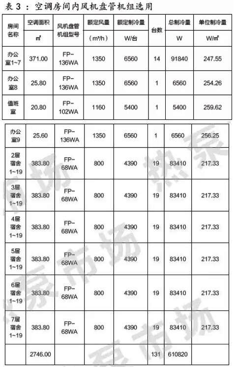 本項(xiàng)目風(fēng)機(jī)盤(pán)管選型結(jié)果如表3:
