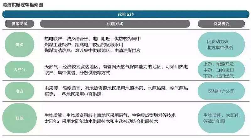 在操作層面,《規(guī)劃》已經(jīng)明確,參考城市和農(nóng)村供暖面積增速,按照整體供暖面積年均增速6%計(jì)算,預(yù)測(cè)到2021年,北方地區(qū)供暖面積約為276億立方米。按照清潔供暖面積不低于70%,具體目標(biāo)是:清潔燃煤集中供暖、天然氣供暖、生物質(zhì)能清潔供暖、電供暖(含空氣源熱泵等熱泵類)、地?zé)峁┡謩e達(dá)到110億、40億、21億、15億、10億平方米。