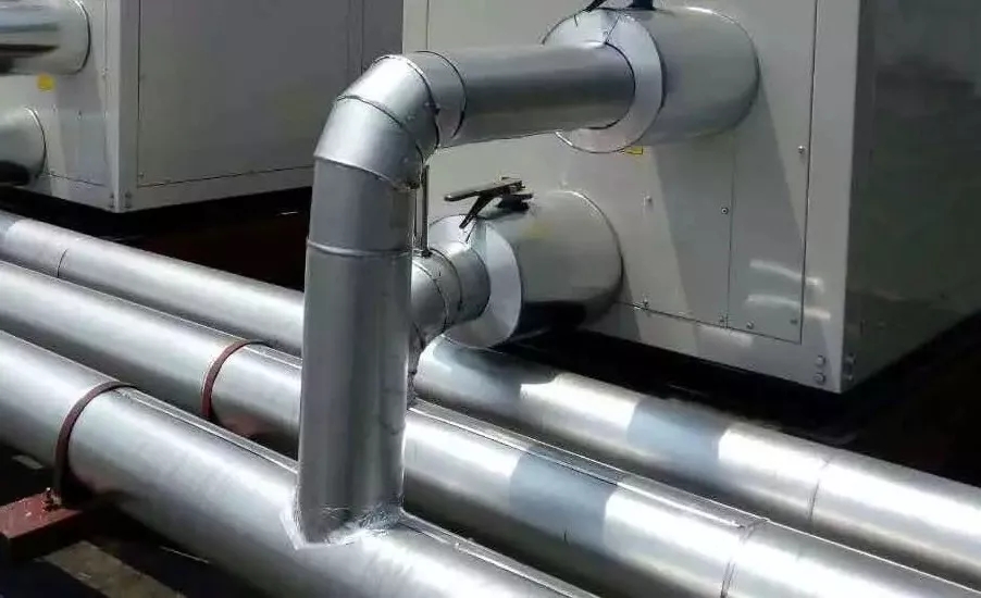 空氣源熱泵供暖的管道保溫室外采用B1級30mm厚,室內(nèi)可以采用美B1級20mm厚。(黑色)室外保溫外層采用鋁皮,室內(nèi)保溫外層采用白色扎帶綁扎美觀。管道閥門及拐彎處須做好保溫不能出現(xiàn)管道外露點(diǎn)。