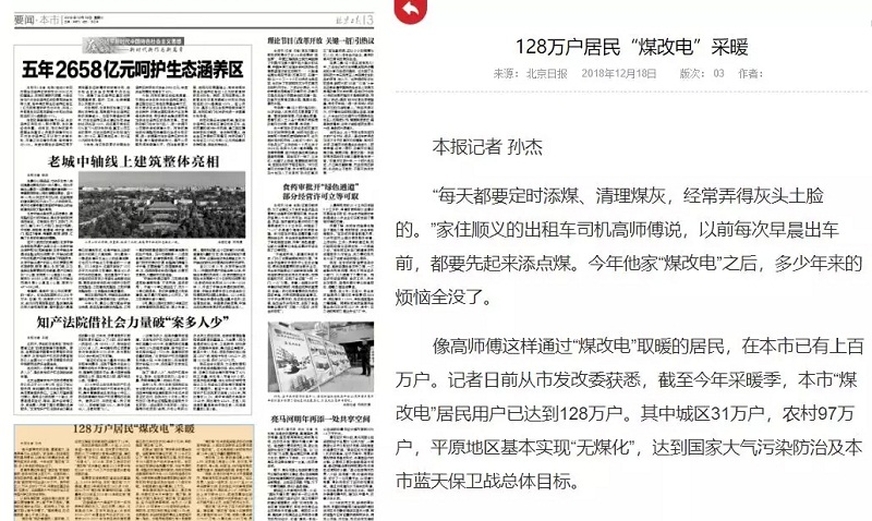 北京日報:北京128萬戶居民實現(xiàn)空氣源熱泵等清潔電采暖